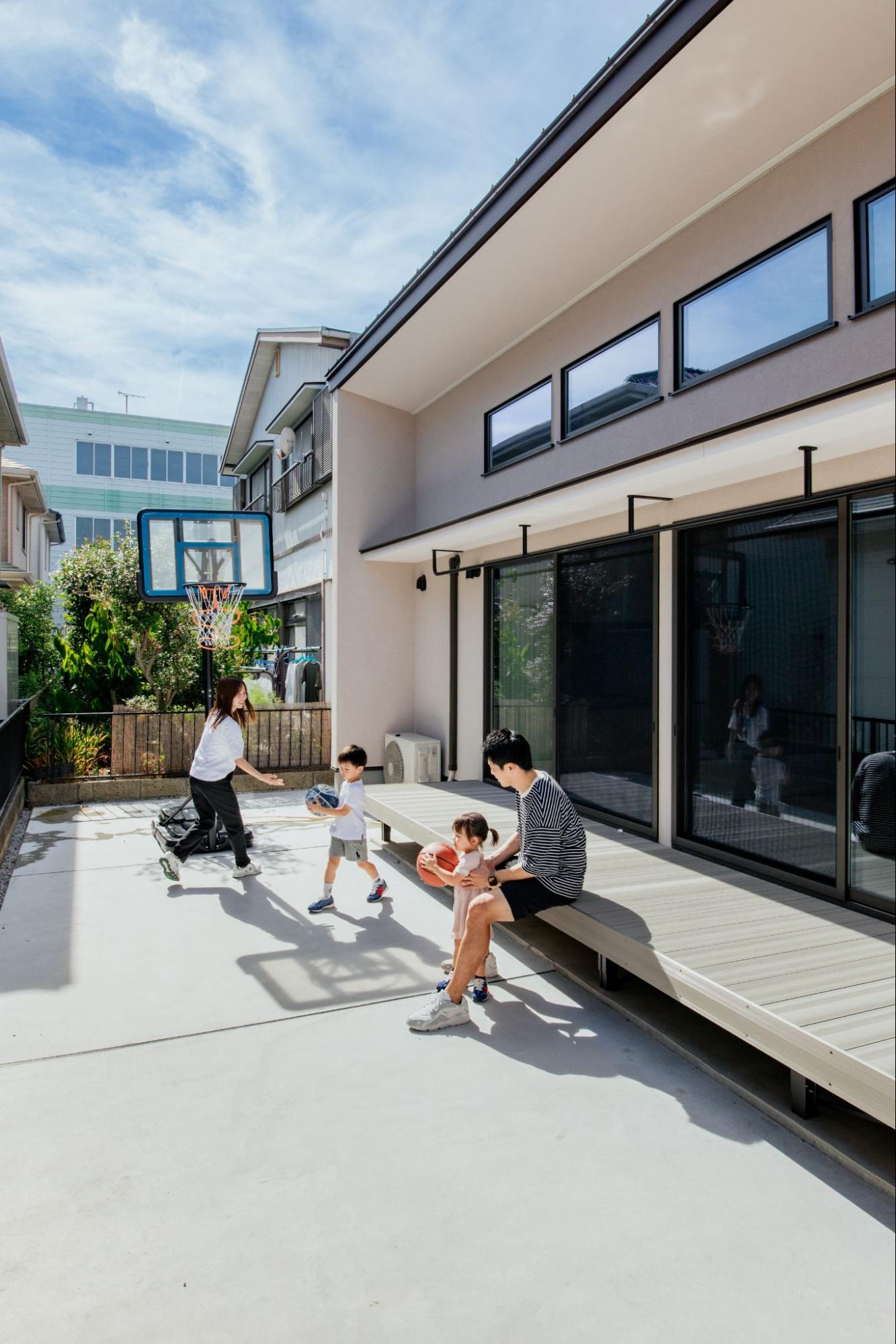 建物で囲まれた中庭は、家族だけのプライベートなアウトドア空間。周りの視線を気にせず、BBQやプールを楽しめます。シンクや倉庫も完備しているので、準備も後片付けもラクラクです。