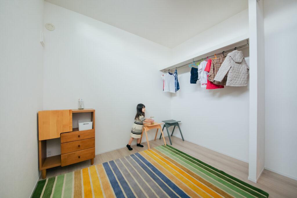 オフホワイトをメインに明るい空間に仕上げた4.5畳の広さの子ども部屋と比較すると、各部屋の個性がより際立って感じられるはずです。