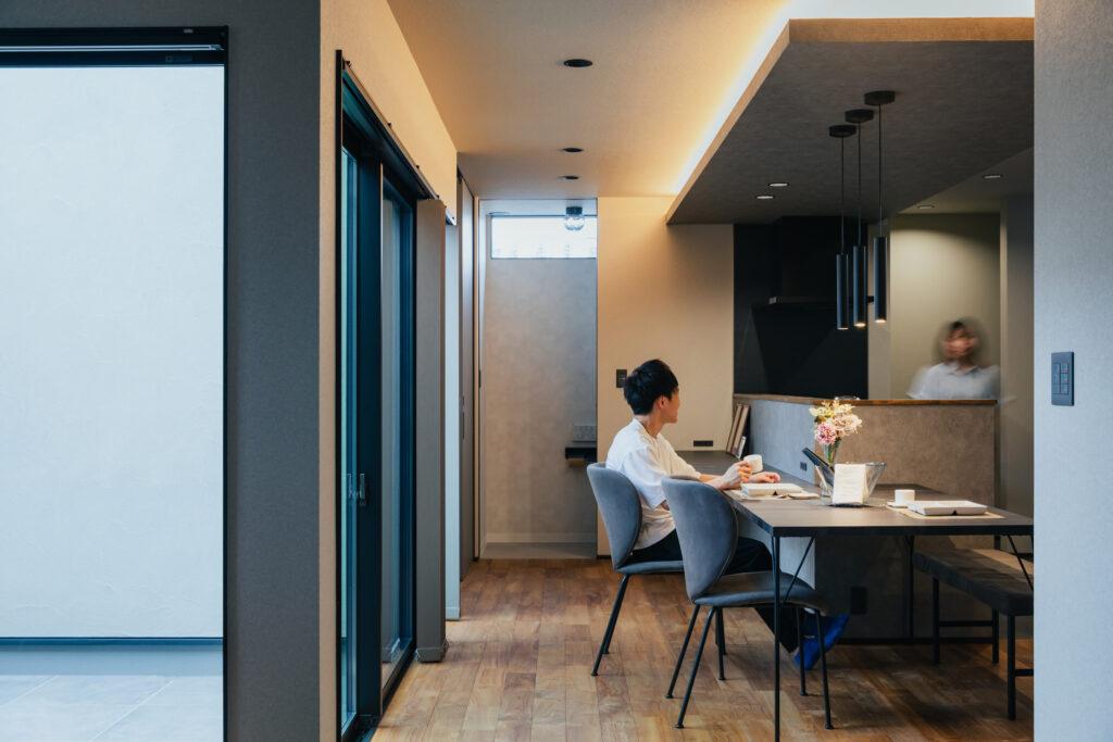 『連なる家』は随所に関接照明を贅沢に採用することで、柔らかな光の中、落ち着きのある暮らしを叶えたい、理想の住まい方がカタチになっています。